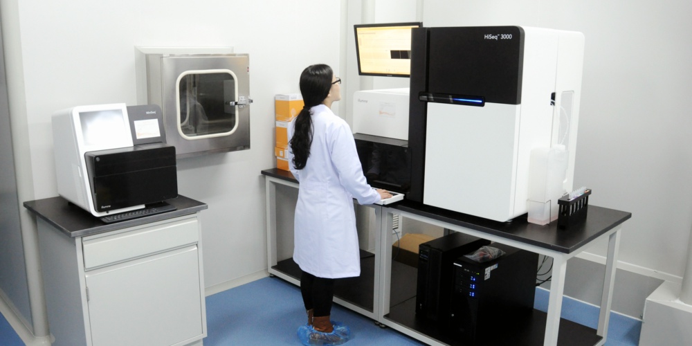 學校建有青島市标準最高的實驗室——精準醫學與保健研究中心。圖為基因測序儀