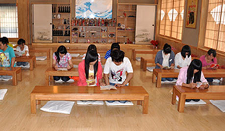 全真日本語言文化情景教室-“日本村”。國際語言文化實踐教學中心—“地球村”。學校建有國際語言文化實踐教學中心—“地球村”,建築面積達3800餘平方米,含“日本村”、“中國村”、“韓國村”、“美國村”、“聯合國村”、等多個情景教室,同聲傳譯實驗室、數字化語言實驗室等18個實驗室,學生們可以模拟國際會議、國際商務談判、進行同聲傳譯實訓及舉辦豐富多彩的語言文化實踐活動,充分體驗目的語言國家的語言、文化魅力。“日本村”是國際語言文化實踐教學中心針對日語專業學生專門建設的全真日本文化情景教室。用于日語會話課、視聽說課、文化課、開放實驗課等課程的教學。“外庭内室”的建築風格獨具日式風情,設有榻榻米,茶道用具和插花用具一應俱全。陳列有和服、木屐、日本人形、傳統玩具、折扇等文化器具及300餘冊日語原版書籍。除了用于專業實踐教學之外,還服務于學生社團活動、日語角、文化交流等第二課堂實踐活動。