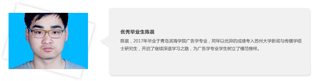 本專業适合對創意、策劃、設計、制作、發布等感興趣,喜歡揣摩構思,喜歡與人溝通,有一定審美素養的學生學習。廣告學專業以其強大的塑造力将學生打造成為富有創造性和想象力、思維活躍敏捷的廣告人。