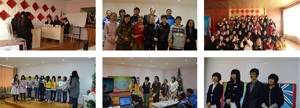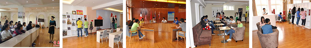 獨具特色的語言文化實踐教學基地---“地球村”:“地球村”即語言文化實踐教學中心,共設11個國家村,其中“聯合國村”、“美國村”、“英國村”、“加拿大村”以及村内的國際商務談判室、商務會議室是本專業實踐教學的特色基地。“地球村”各實驗室的裝修風格和室内布局具有鮮明的民族文化特色,村内展示了各國具有代表性的人物圖片、雕塑、傳統服飾、挂畫、擺件等,在外語實踐教學、第二課堂活動、文化展示與傳播等方面發揮着重要作用。